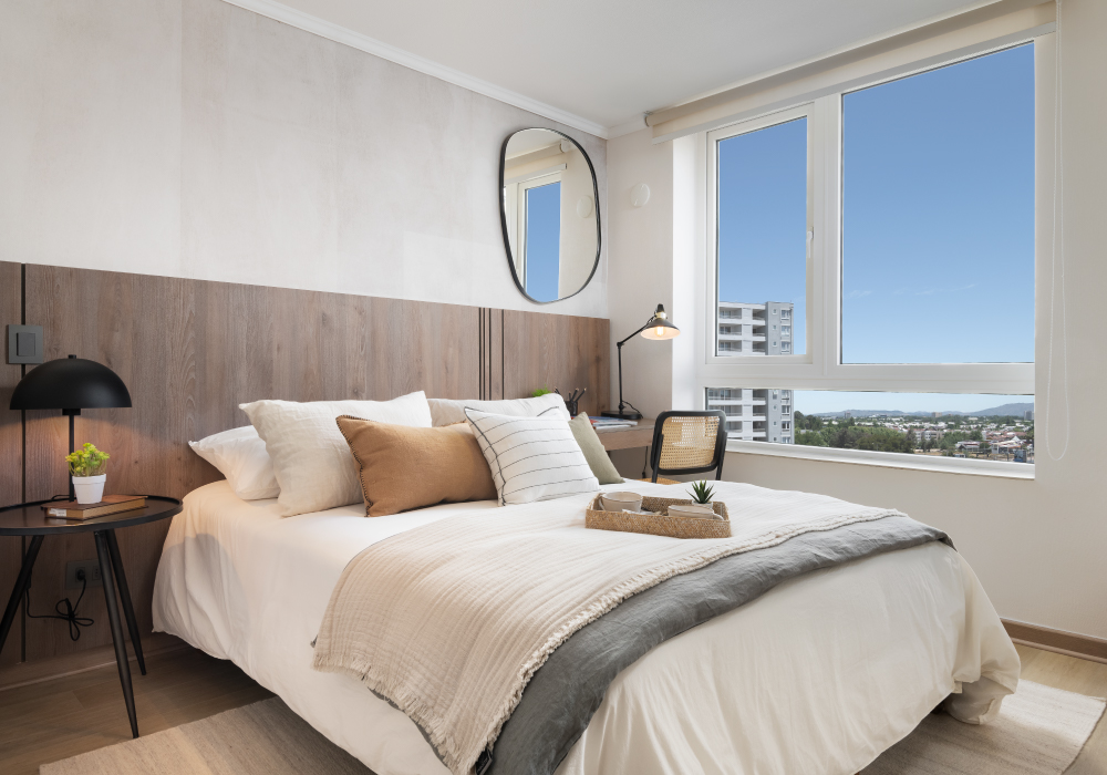 Vive la diferencia con la calidad Pocuro. Departamentos con piso SPC, ventanas termopanel con marco PVC, revestimiento térmico exterior EIFS y cocina equipada con horno, encimera y una elegante cubierta de porcelanato. Dormitorios cómodos, ideales para tu descanso o estudio. Calidad y diseño en cada rincón.